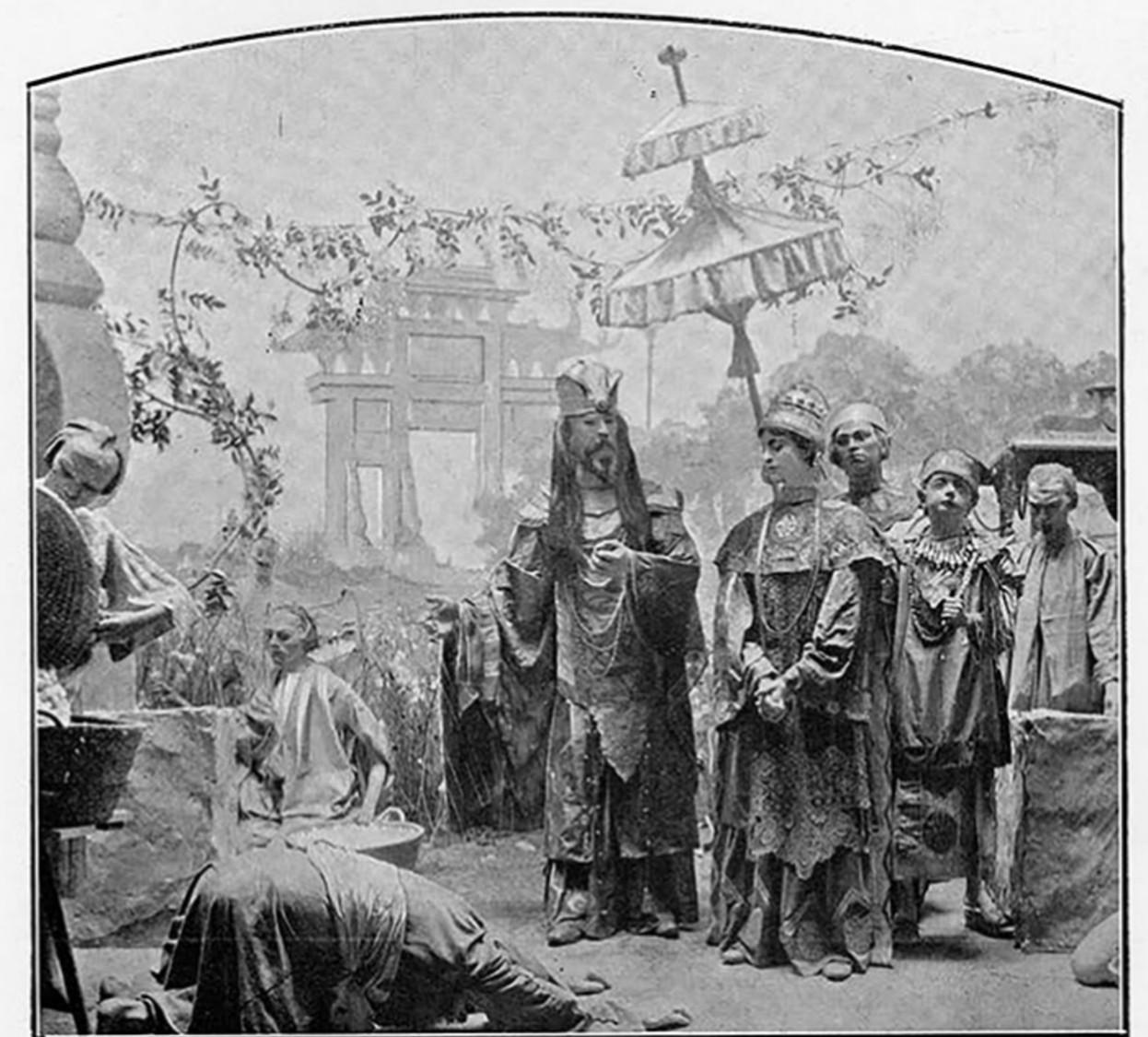 Representation by Giovanni Battista Carpanetto of an ancient Chinese Emperor and Empress examining the manufacture of silk in China in 2698 B.C. in E. Ferrettini. “La storia dell’arte della seta nei diorami dell’Esposizione”. Giornale ufficiale, giugno 1911, p.416-417